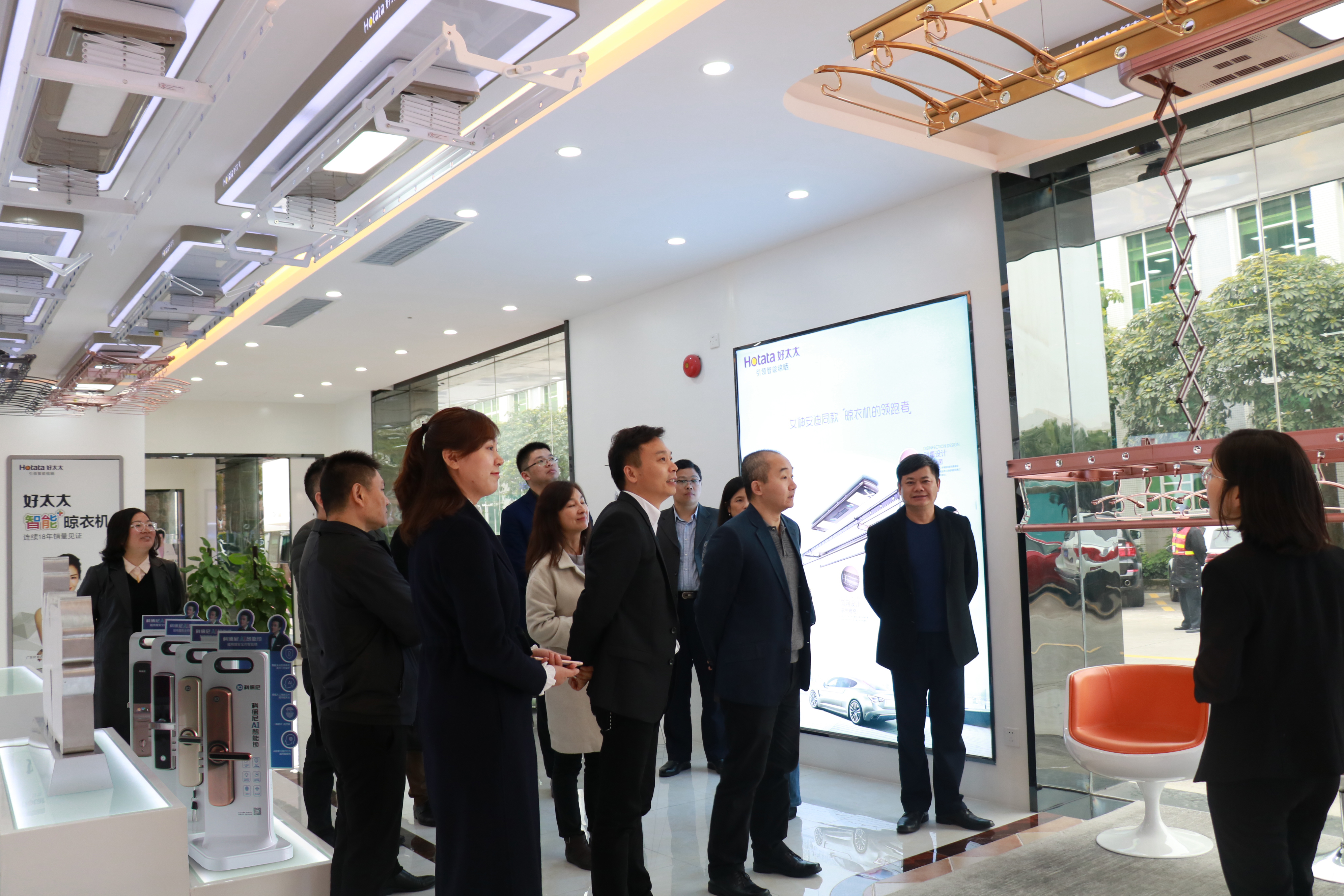 会议结束后,调研组参观了广东好太太集团品牌展示中心,参观过程中,由广东好太太集团董事长沈汉标围绕公司的核心技术产品作现场介绍讲解。随着物联网、云计算产业的蓬勃发展,以智能锁、智能晾衣机为代表品类的智能家居已成为物联网领域备受瞩目的应用。广东好太太集团正着力打造智慧家庭生态圈,以智能锁、智能晾衣机为拳头产品,打造智能安防、智能晾晒、智能清洁、智能交互四大板块,实现家居生活场景全覆盖。