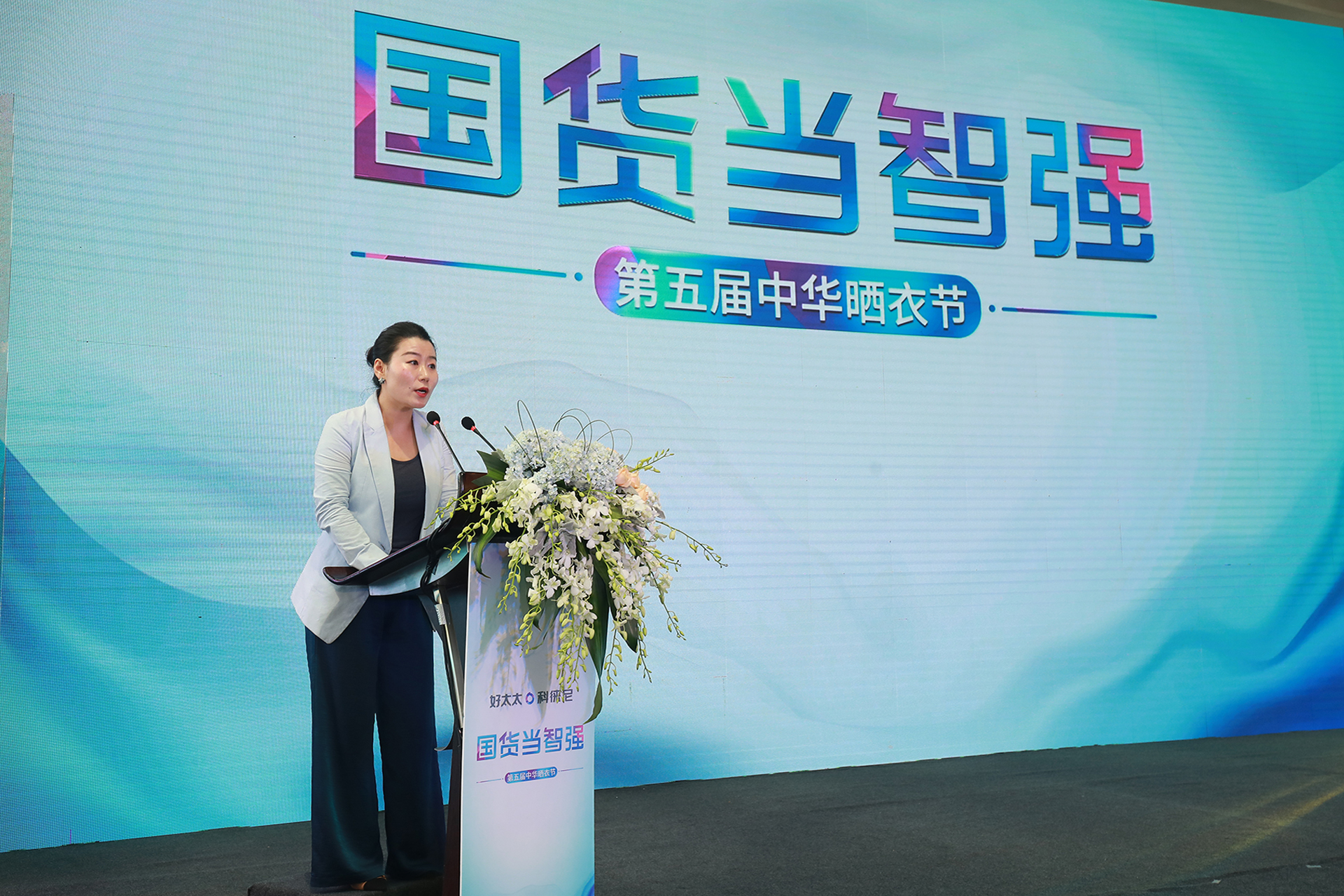 广东好太太集团总裁王妙玉女士也登台为第五届中华晒衣节致辞。表明了好太太集团倡导文化自信,以智能家、趣生活为核心使命以强大的科技赋能创新晾晒新革命,为人们提供了轻松、快乐的生活方式。