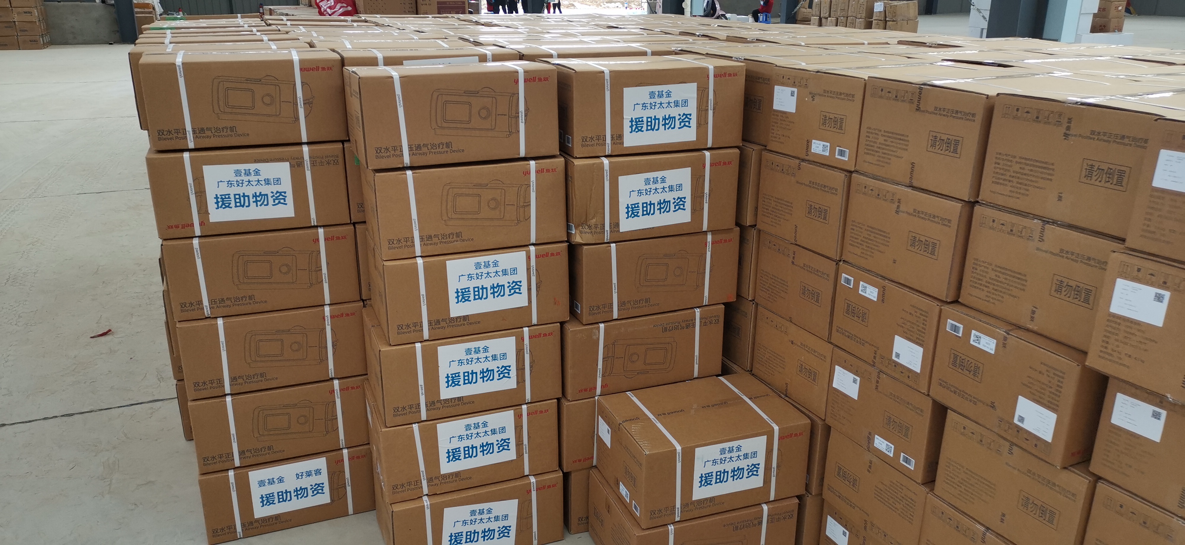 2月8日,医疗物资到达湖北省孝感市,并进行匹配,包括86台双水平正压通气呼吸机和120套压缩空气雾化器。