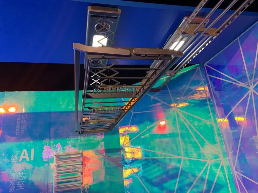 现场展示好太太水晶款智能晾衣机,集自动下降,智能干衣、消毒杀菌功能于一身,一站式解决晾晒难题,外观融入了施华洛世奇®元素,独特切割的纯净璀璨水晶邂逅匠心巧思的智能晾晒,天生智能与闪耀浪漫发生了碰撞。