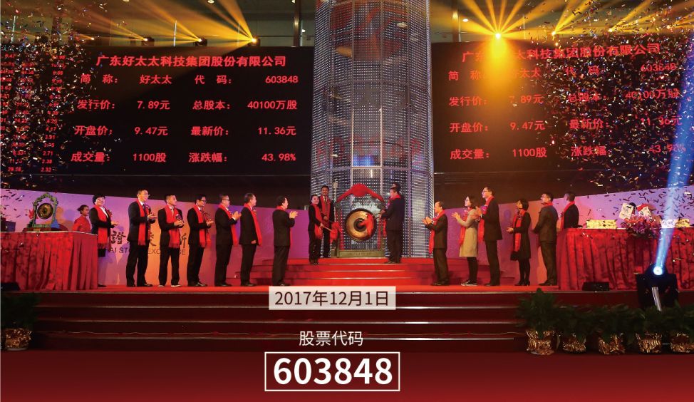 2017年12月1日,好太太集团在上海证券交易所鸣锣敲钟,成功登陆A股,股票代码603848,成为行业首家主板上市龙头企业。一时间,行业震动,举国瞩目,承载着数千万家庭的喜爱,好太太集团成为行业高山仰止的标杆企业。立于泰山之巅,好太太集团超越自我,再战高峰,续写传奇,重金打造全新品牌科徕尼,旨在起航巨大的智能家居蓝海市场!