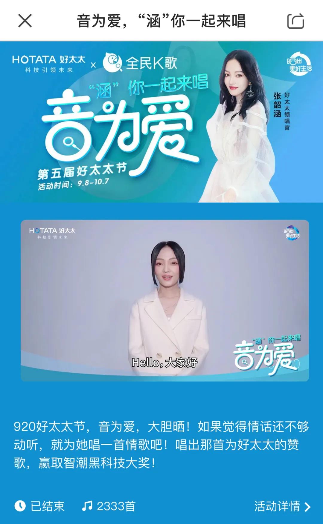 以张韶涵作为好太太领唱官,通过全民K歌平台将歌声传递给她